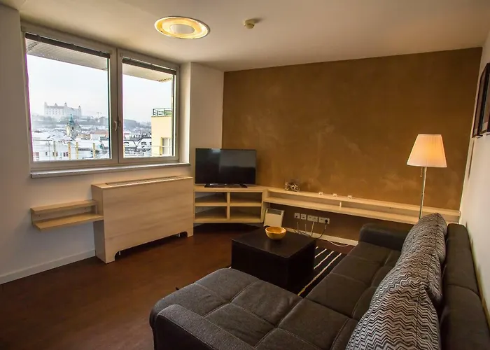 Há também cozinha, equipada com chaleira elétrica, equipamentos para café/chá e peças de vidro em cada unidade. A 15 minutos de carro do aeroporto em Bratislava e a 25 minutos a pé da estação de comboios de Bratislava Main.